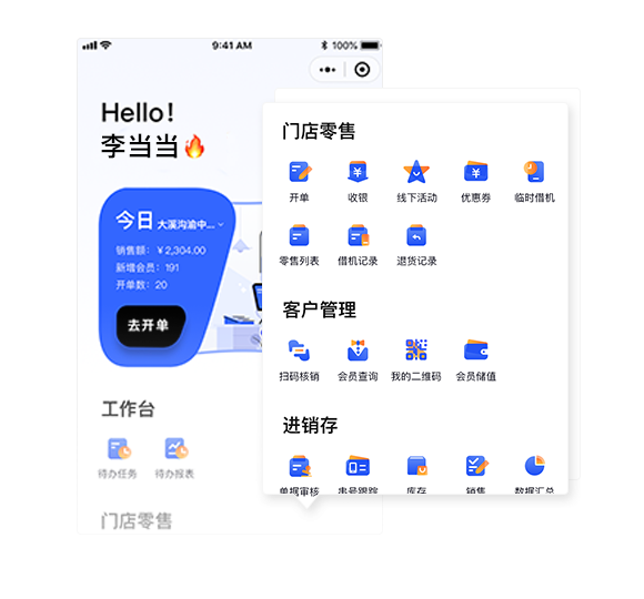 零售开单 / 收银 / 退货 / 扫码核销 / 串号跟踪